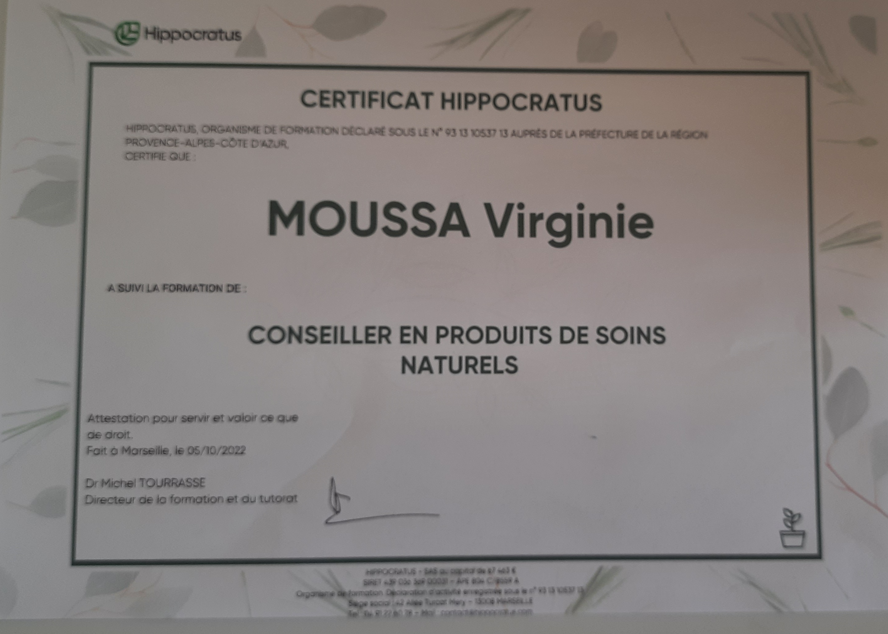 puis je me suis perfectionnée en phytologie, produits de la ruche et micronutrition au centre de formation HIPPOCRATUS https://www.hippocratus.com/ pendant 1 ans pour acquérir une connaissance des plantes et des huiles essentielles plus poussée et pouvoir les conseiller.